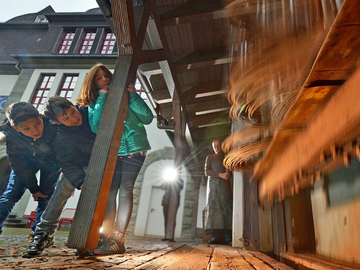 Der Schockenzug hat seinen Namen von dem Begriff „Schocke“ = Schaukel. Ein Nachbau des historischen Drahtzugs, bei dem der Drahtzieher mit seiner Muskelkraft arbeitete, steht auf dem Vorhof des Museums und wird bei Führungen genutzt.