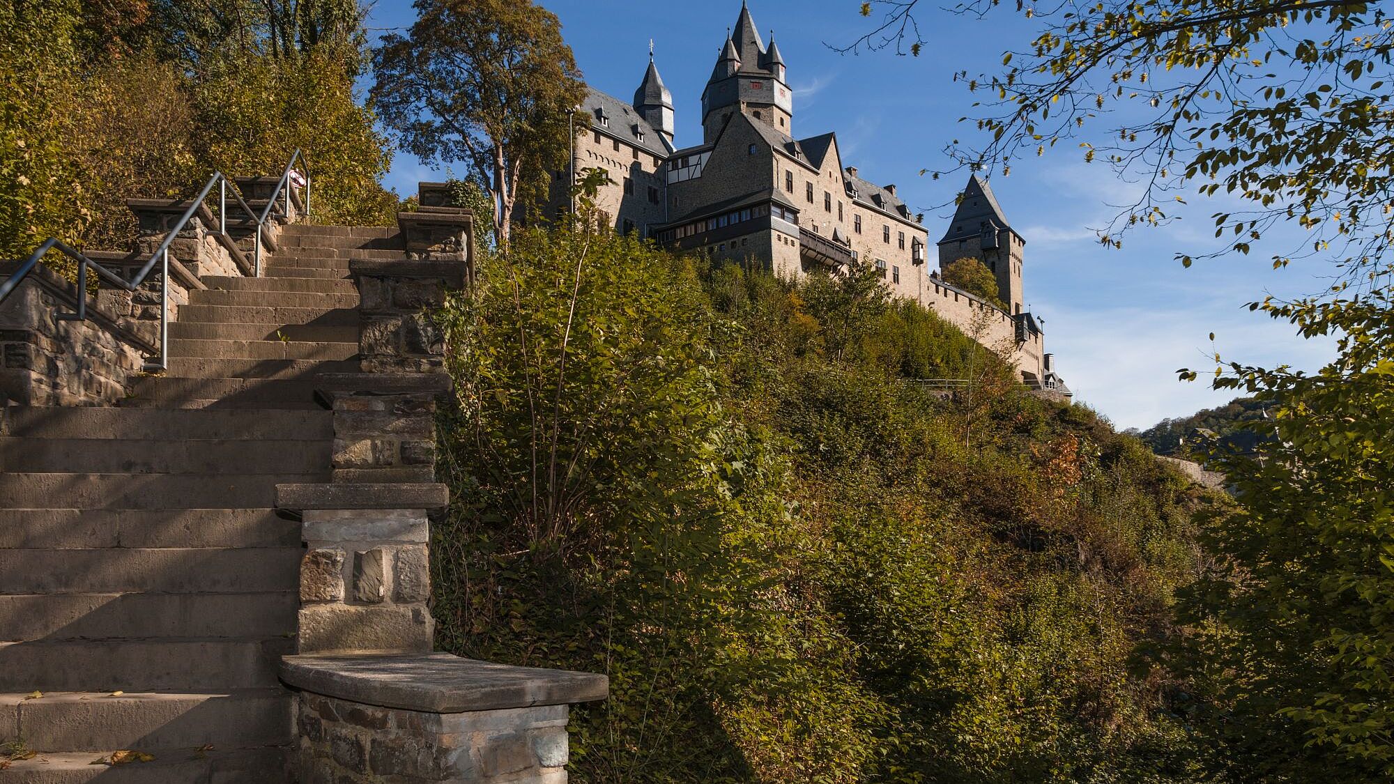 Viele Wege führen zur Burg Altena, die hoch über der Stadt thront. Welchen Weg Sie wählen, hängt von Ihrer Zeit ab und auch ein bisschen von der Kondition. Am schnellsten reisen Sie mit dem Auto und dem Erlebnisaufzug an. Mit viel Muße wählen Sie die Variante per Bus oder Bahn, um sodann vom ZOB bzw. Bahnhof über die Lenne und die Panoramawege des Weyhe-Parks zur Burg hinauf zu spazieren. Sie haben die Wahl.